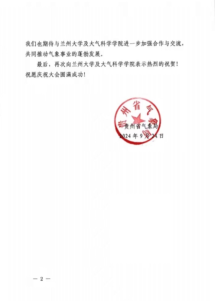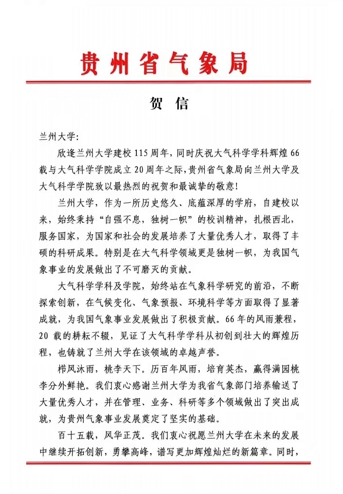 贵州省气象局致best365官方网站登录入口建院20周年贺信