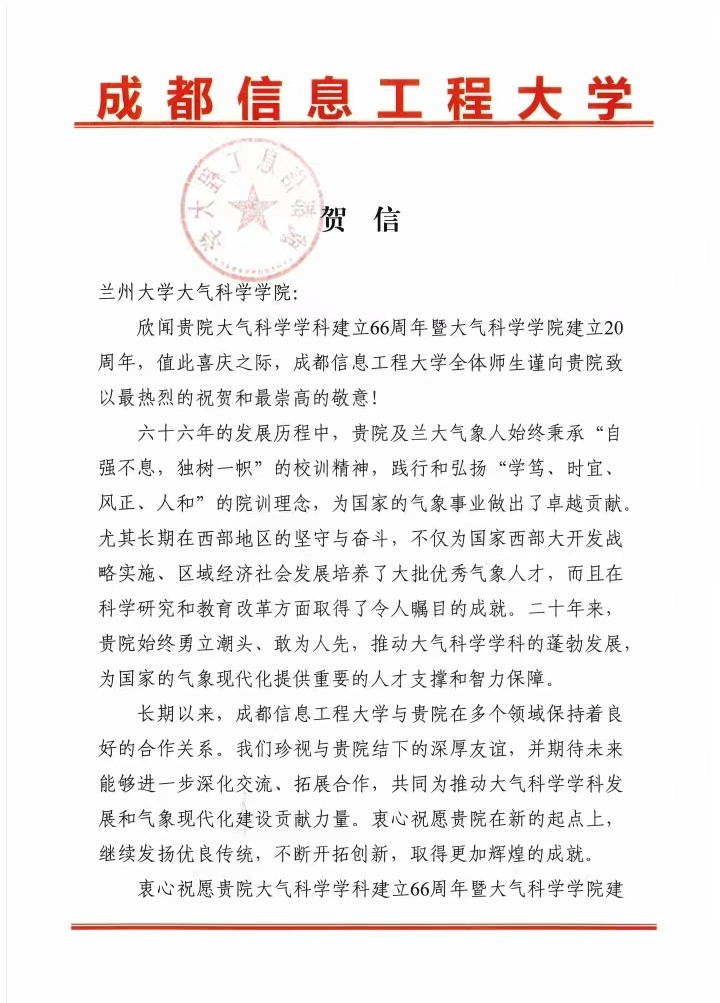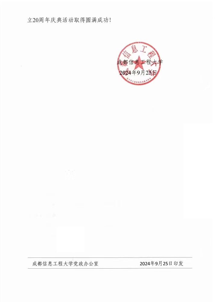 成都信息工程大学致best365官方网站登录入口建院20周年贺信