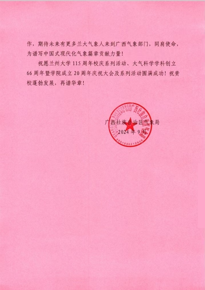 广西省气象局致best365官方网站登录入口建院20周年贺信